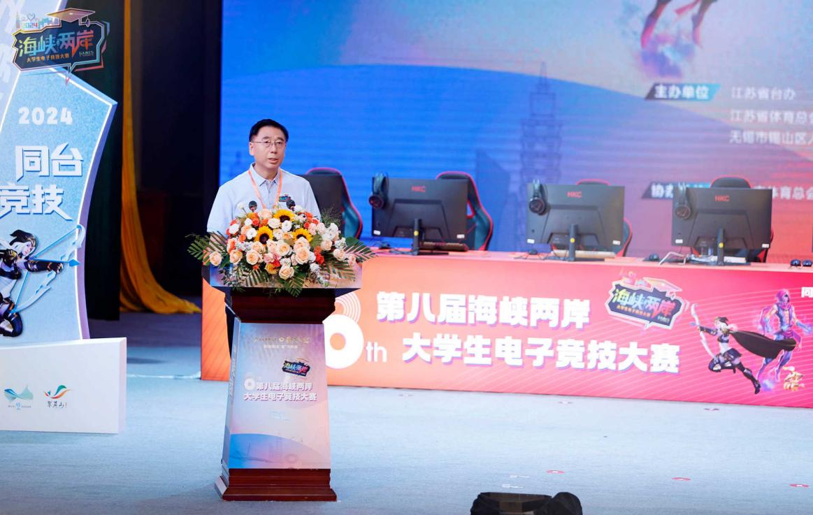 8月10日上午,第八届海峡两岸大学生电子竞技大赛(无锡锡山)启动仪式在我校顺利举行,作为2024海峡两岸(江苏)体育嘉年华活动重要内容之一,本届大赛以“同台竞技 ‘电’亮未来”为主题,吸引了来自海峡两岸的辅仁大学、东吴大学、江南大学、南京航空航天大学等12所高校60余名大学生电竞爱好者参赛,江苏省台办副主任封志成宣布开赛。江苏省体育总会副会长范金华,新北市体育总会理事长蒋根煌,民革江苏省委常委邱华康,锡山区委常委、统战部长张爱军,锡山区副区长保海燕,我校校长张永宏和副校长梁惠娥等受邀参加启动仪式。