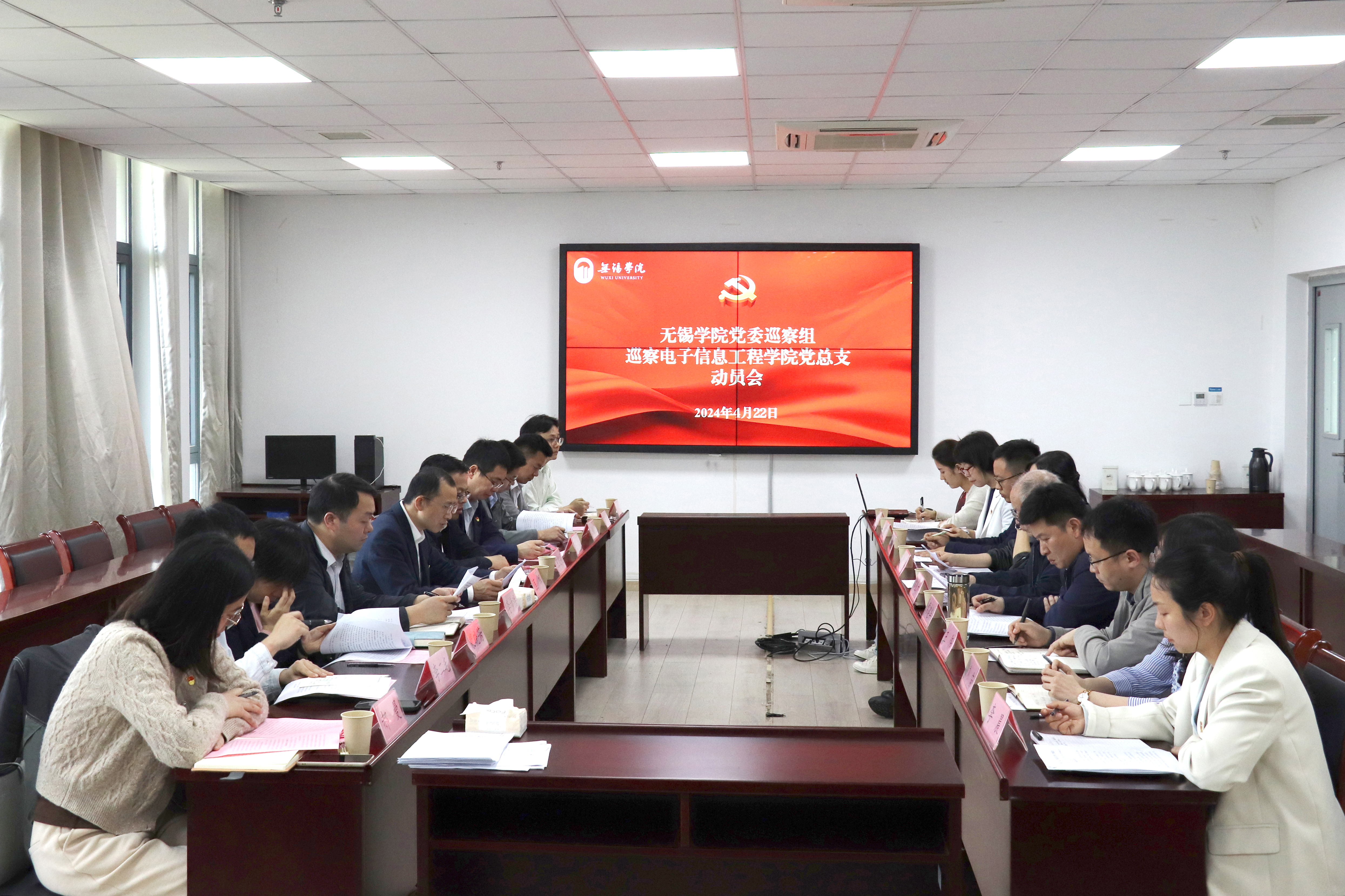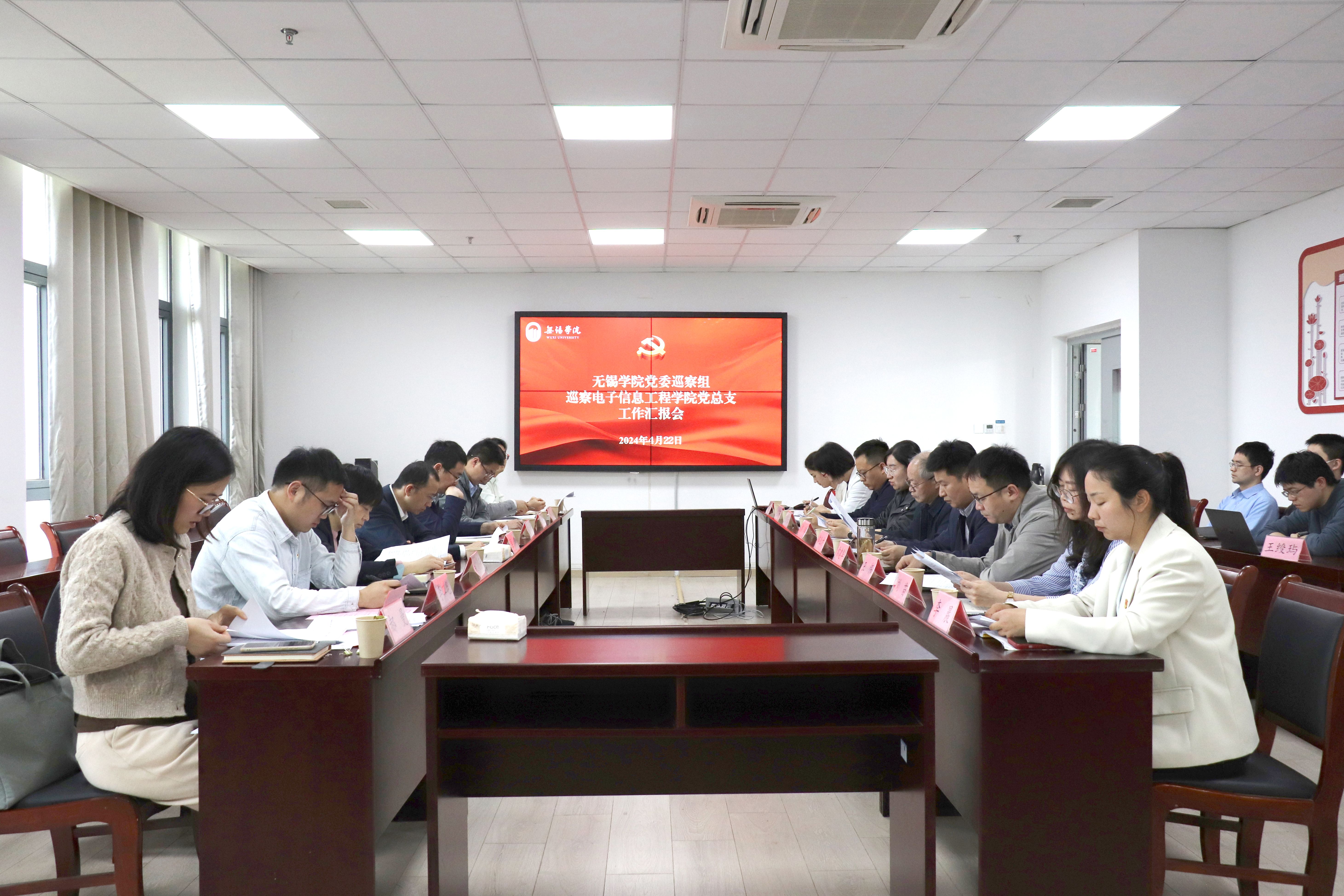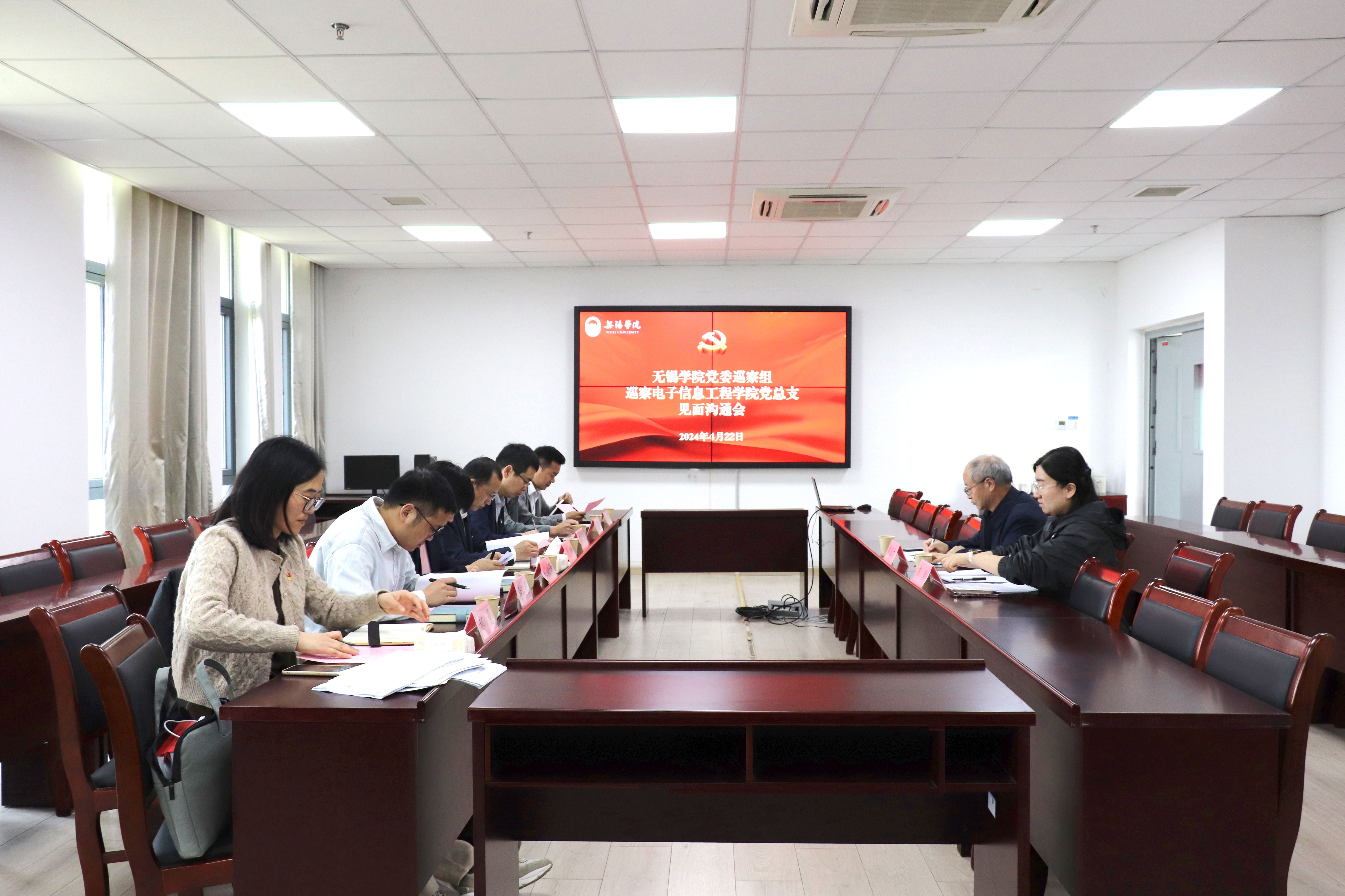 根据校党委统一部署,4月22日下午,校党委巡察组巡察电子信息工程学院党总支工作动员会在思贤楼512会议室召开。会前,校党委副书记、党委巡察组组长匡辉主持召开与学院主要负责人见面沟通会,通报了巡察主要任务、工作安排和具体要求。