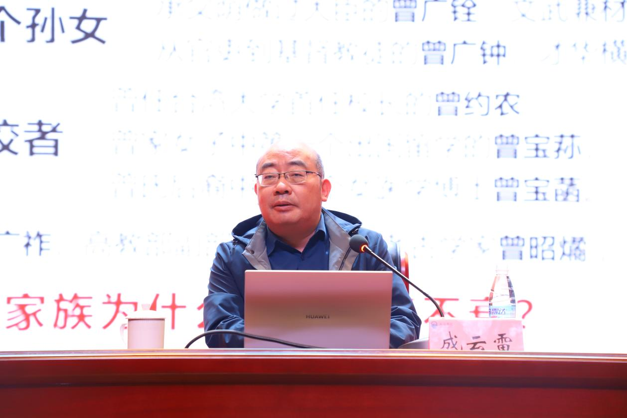成云雷教授以《中华优秀家风与党员干部政德建设》为题作辅导报告。他以习近平关于注重家庭家教家风建设的重要论述开篇,围绕“什么是家风”“家风关联着党风政风民风”“以好家风立政德”“中国传统家风家训欣赏”等四个方面,详细阐释了家风的概念、家风的形成机制,家风对落实全面从严治党战略、建设和谐社会和促进个人成长成才的重要意义,提出“修己身”“贤配偶”“育子女”的优良家风建立要点,指出通过“明大德”“守公德”“严私德”实现以好家风立政德的路径。成云雷教授通过丰富生动的案例、深入浅出的讲解,为我校师生党员深入学习中华优秀家风、加强个人廉洁修养提供了有益的指导。