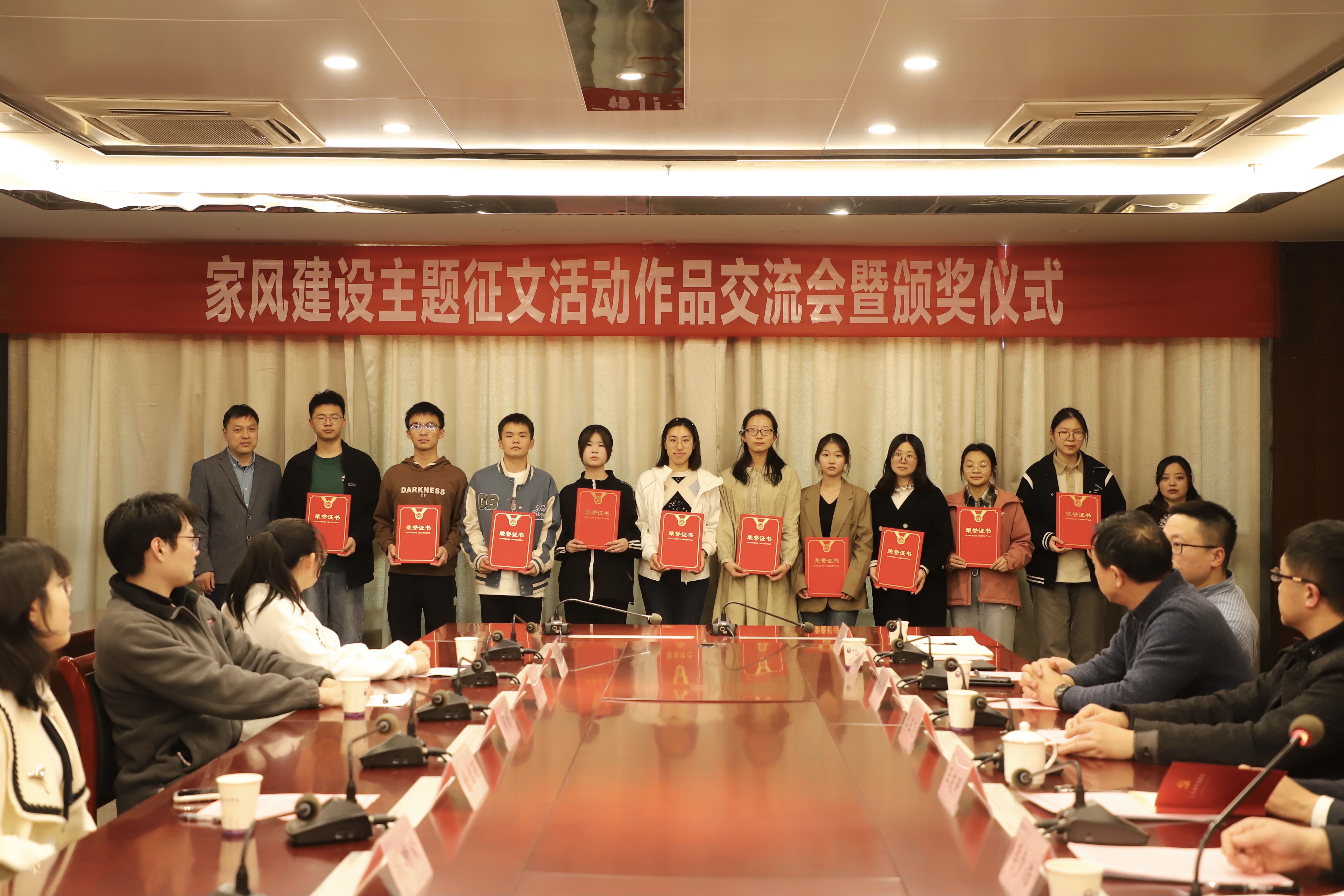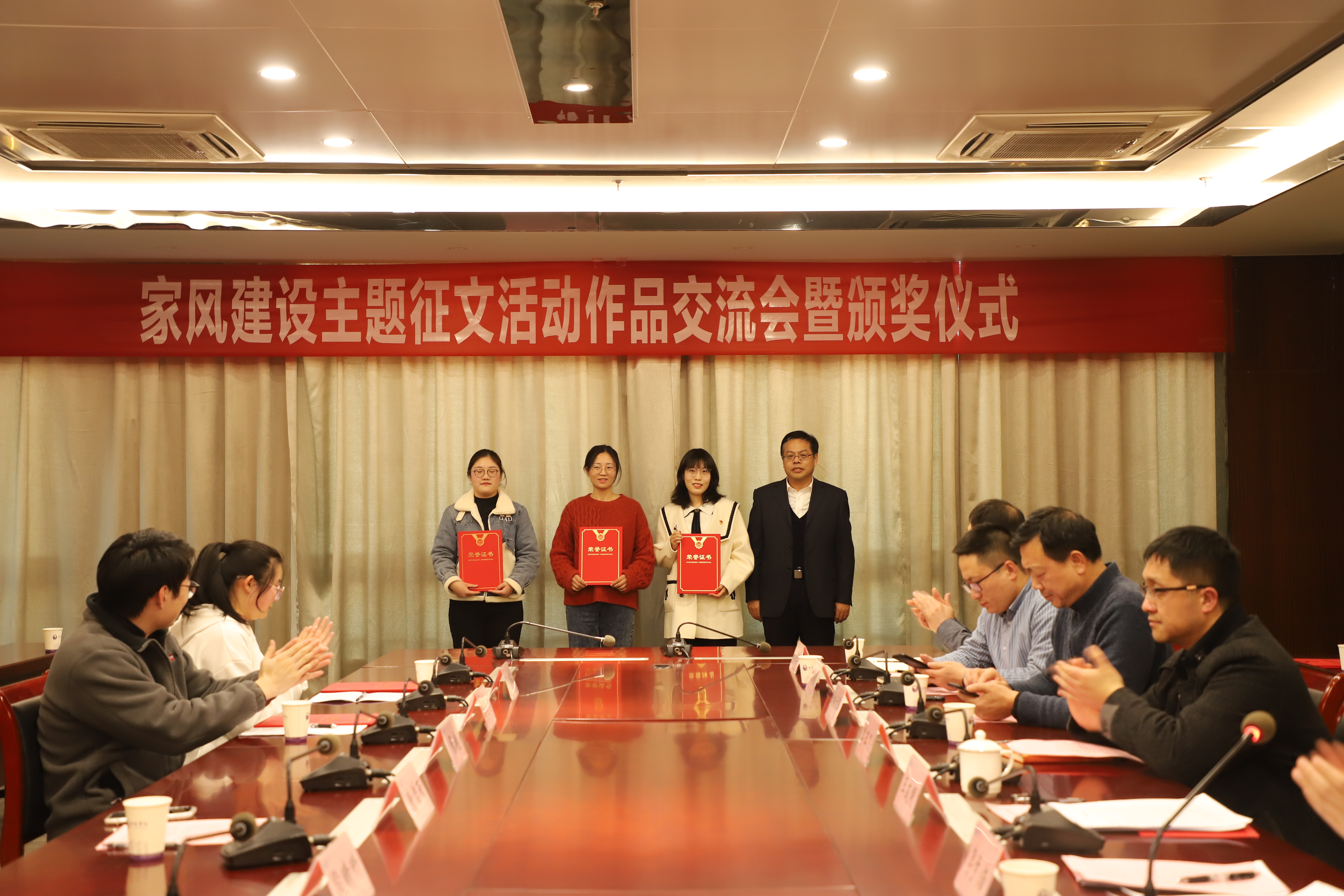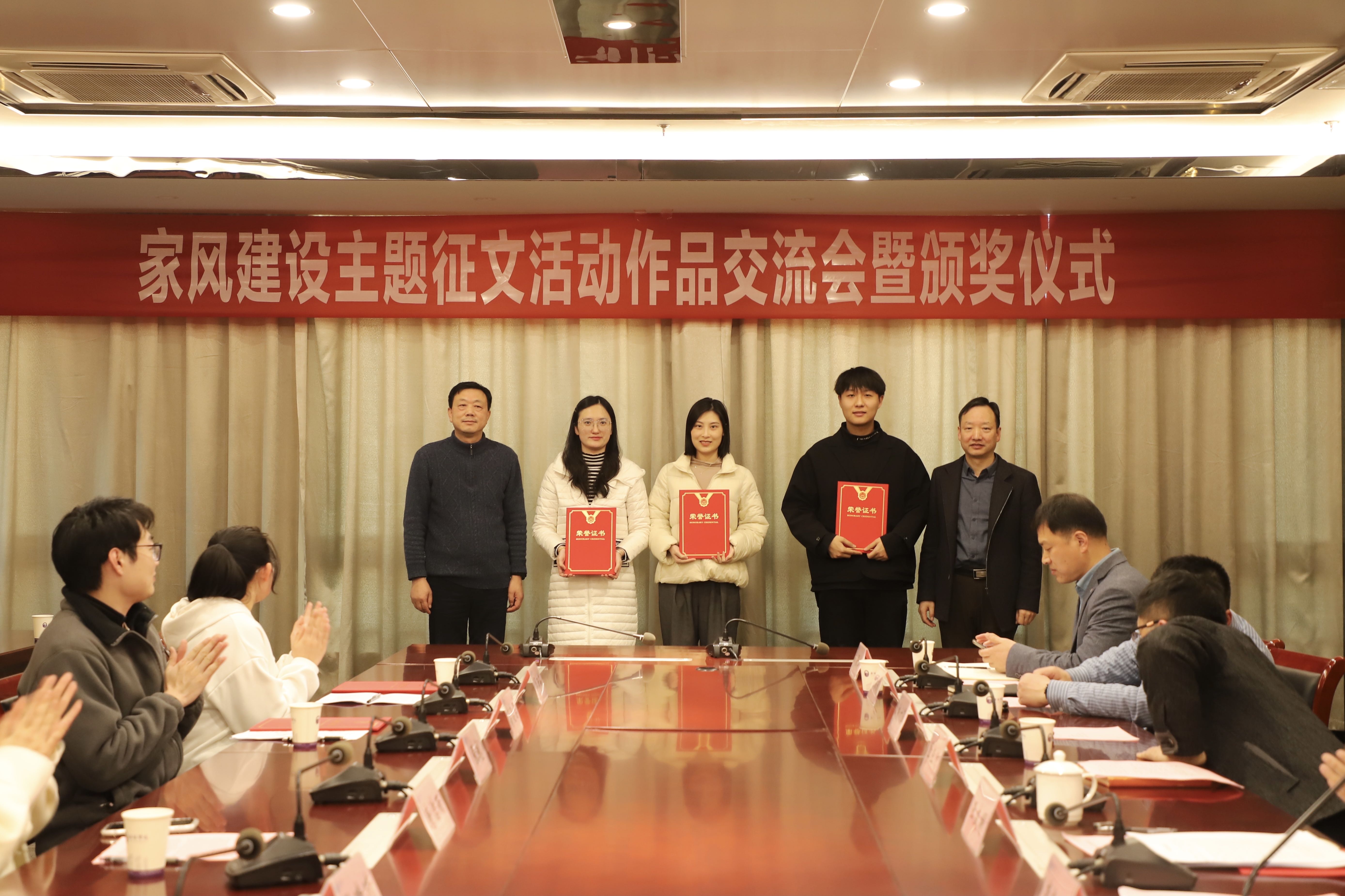 王友明在讲话中,首先对参与征文活动的师生表示感谢,对获奖师生表示衷心的祝贺。他强调中华民族历来注重家庭、家教、家风,党的十八大以来,以习近平同志为核心的党中央高度重视家庭家教家风建设。2021年,中宣部、中央纪委机关等部门联合印发《关于进一步加强家庭家教家风建设的实施意见》,以建设文明家庭、实施科学家教、传承优良家风为重点,强化党员和领导干部家风建设。党的二十大报告指出,要弘扬中华传统美德,加强家庭家教家风建设,推动明大德、守公德、严私德,提高人民道德水准和文明素养;要坚持和发展马克思主义,必须同中国具体实际相结合,同中华优秀传统文化相结合。好家风是中华民族优秀传统文化的传承,是家庭美德的集中体现,去年6月,我校与无锡市纪委监委联合成立无锡市家庭家教家风建设研究中心,体现了校地双方对这一领域工作的重视和殷切期待,研究中心将在家风与党风、校风、师风、学风一体化建设方面积极探索,形成高校特色,产生社会效果。