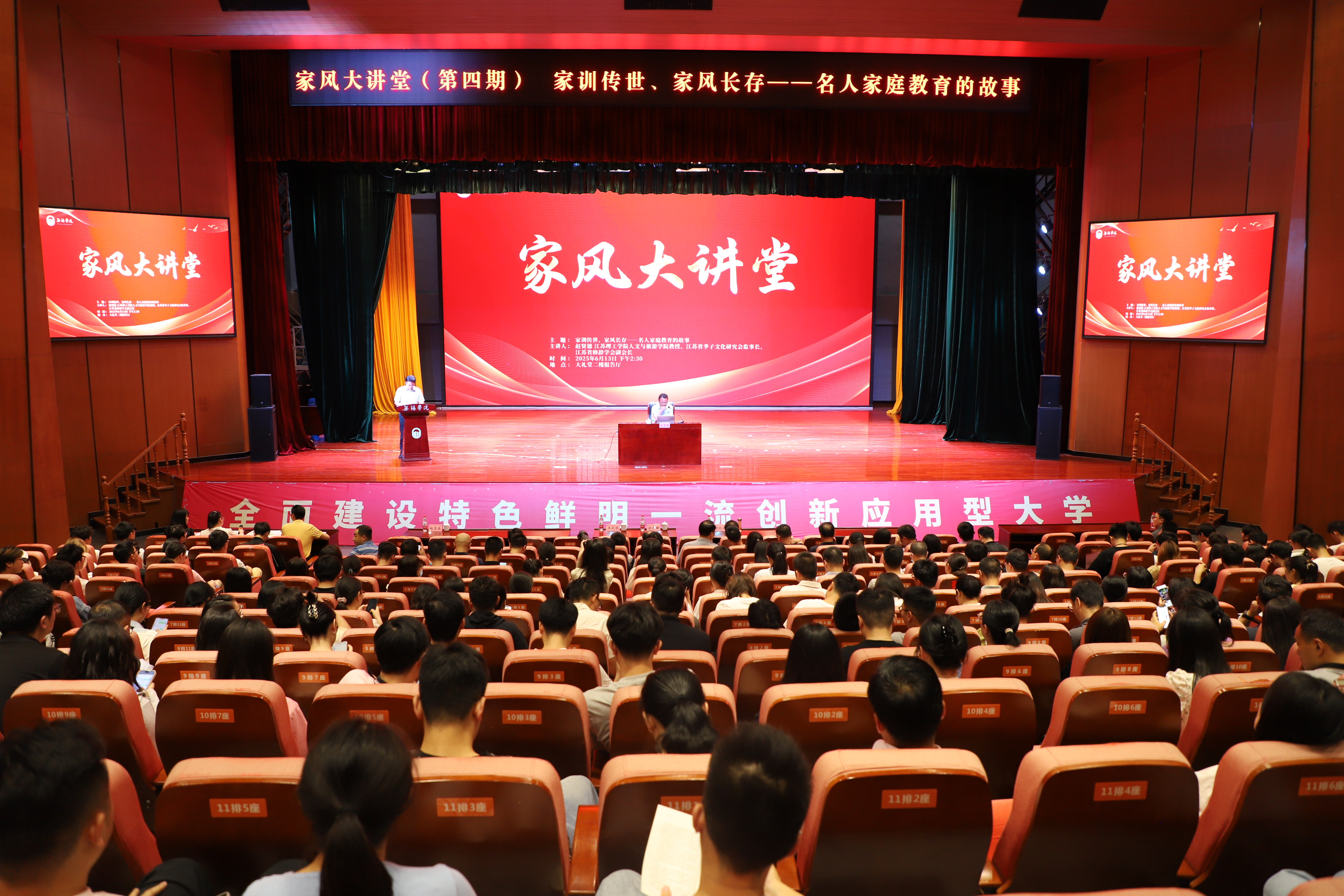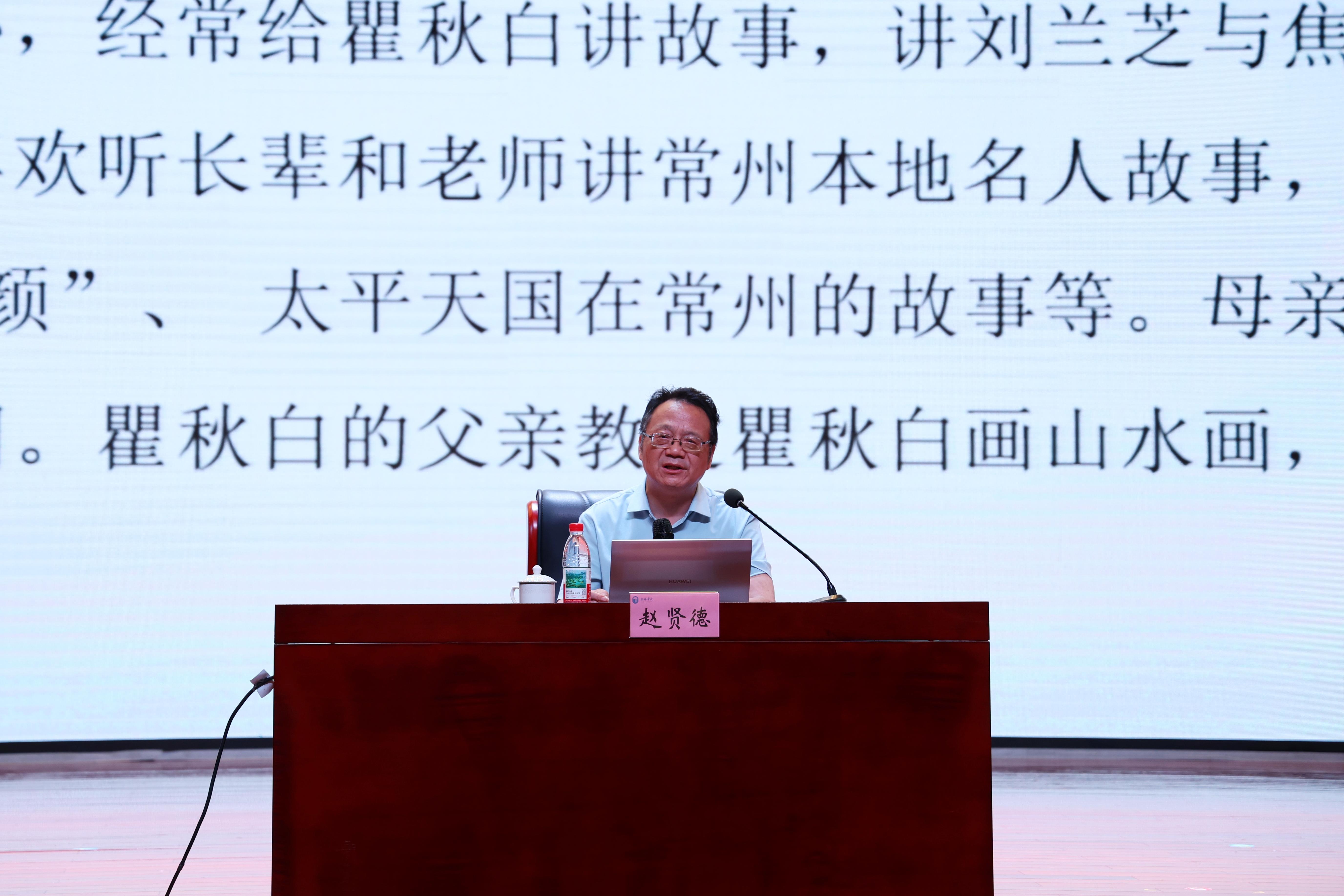 6月13日下午,学校在大礼堂二楼报告厅举行第四期家风大讲堂,邀请江苏理工学院人文与旅游学院教授、江苏省季子文化研究会监事长、江苏省修辞学会副会长赵贤德来校作专题报告。报告会由校纪委书记王友明主持,副校长胡剑凌出席报告会。
