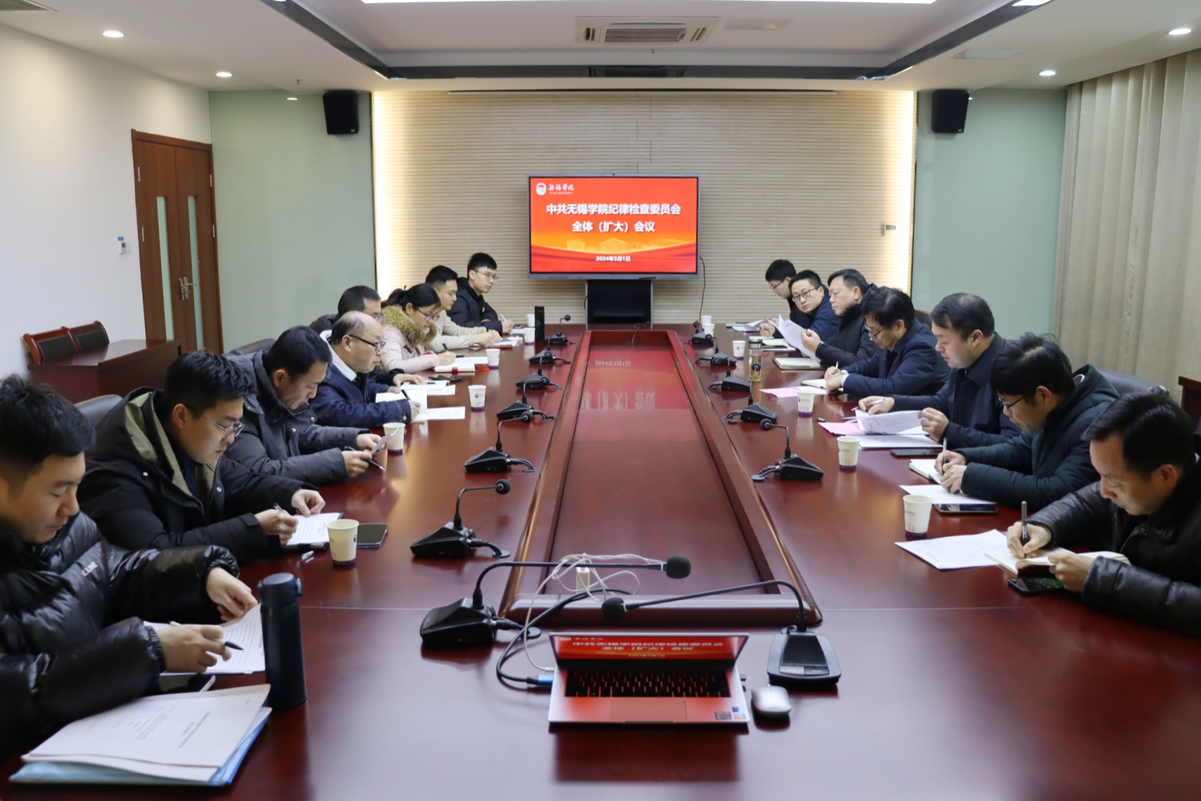 3月1日上午,中共无锡学院纪律检查委员会全体(扩大)会议在行政楼301会议室召开。校纪委书记王友明主持会议并讲话。校纪委委员、各党总支纪检委员、纪委办公室工作人员参加会议。
