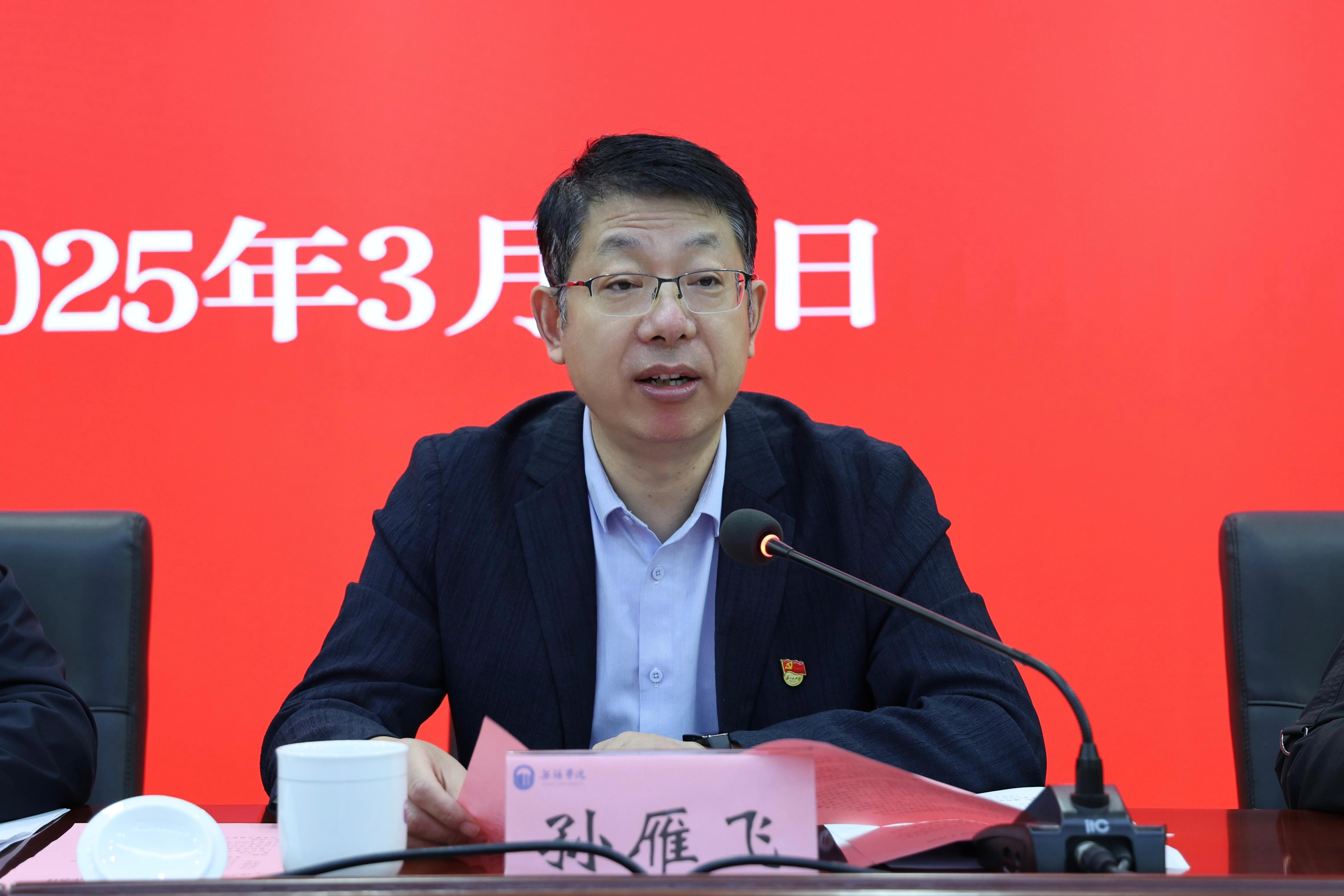 孙雁飞就学习贯彻落实本次会议精神提出明确要求:一是要提高政治站位,抓好贯彻落实。学校基层党组织要尽快召开专题会议,传达落实好此次会议精神,结合具体工作实际,把全面从严治党与立德树人根本任务紧密结合,确保全面从严治党各项工作抓深入、抓具体、抓到位。二是要严明纪律要求,树牢规矩意识。要进一步严格教育管理,扎实开展警示教育、廉洁教育、纪法教育,持续加强党规党纪学习,把党的纪律和各项规章制度转化为日常习惯和自觉遵循,做到知敬畏、存戒惧、守底线。三是要培育优良作风,强化担当作为。要树牢“党的作风建设永远在路上”的理念,把握强作风、促发展、提效能的工作主线,落实“严”和“实”的工作要求,发扬主人翁精神,紧紧围绕学校重点工作凝心聚力、攻坚克难,为答好学校高质量发展的“实干卷”贡献力量。