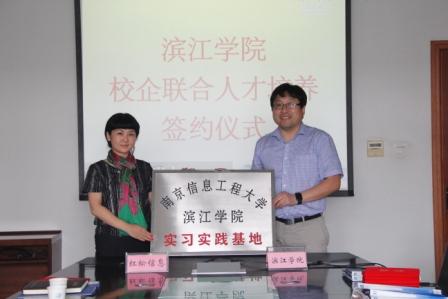 随后,耿焕同代表滨江学院依次与五家企业签订了合作协议,并向五家企业颁发了指导教师聘书和实习时间基地铜牌。