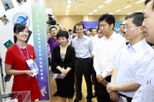 6月6日,第十四届挑战杯江苏省选拔赛决赛暨江苏省大学生科技创新成果展在古城淮安成功举办。副省长曹卫星,团省委书记万闻华等领导亲临现场。我院“太阳能汽车辅助空调”项目成功参展,这是我院首次有科创项目冲进省赛。 现场同学表现优异,曹副省长对我院的项目给予了充分肯定,现场体验了我院的成果,认为该项目有很好的实用和推广价值,鼓励同学们点燃激情,挑战梦想,进一步完善,争取早日投放市场。展会期间,江苏卫视,淮安电视台,淮安日报等多家媒体也对我院参赛项目进行了采访。 有梦想,有目标,有行动,就会有结果。加油!滨江!为辛苦几个月的老师和同学们点赞。