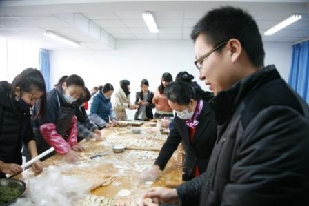 上午10点,师生们就聚在一起开始热热闹闹地包饺子,大家分工有序,忙而不乱,一会儿工夫桌子上就摆满了包好的饺子。虽然包的饺子风格不同、形状各异,但大家都沉浸在愉快的氛围中。中午,热腾腾的饺子出锅了,同学们围坐在餐桌前,品尝着自己的劳动果实,一股暖流不禁涌上心头,他们品味到的不仅仅是一盘美味的水饺,更 是学校老师对他们的那份关心和体恤。