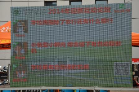 在迎新现场,新搭建的LED电子显示屏,及时发布校园最新资讯,播放迎新视频。同时公布微信平台二维码,供学生、家长交流互动。“军训中要注意什么”“大学四年如何规划”“大学生活怎么尽快适应”在互动屏上,不少学生提问了,这些问题经过后台志愿者的处理,得到了及时的回复。这些共性的问题,显示出来后,给了更多学生以教益和帮助。一些家长在显示屏上寄语给孩子,一些孩子则表达了自己的感恩之情,让家长放心,一定好好学习,珍惜大学四年生活。在显示屏旁边设立“家长充电处”,家长能在此处给手机充电。细致的服务让家长和学子感受到温暖贴心的服务。
