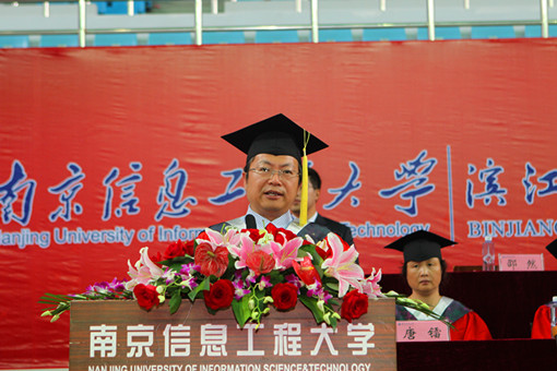 校长蒋建清在毕业典礼上致辞。蒋校长首先向圆满完成学业的毕业生表示真诚的、热烈的祝贺,向始终关心同学们成长的亲友和社会各界人士表示衷心的感谢。蒋校长说,经过四年的努力,同学们赢得了今天的荣耀,也打开了新的希望之门。蒋校长希望同学们志存高远,脚踏实地。在树立长远职业目标的同时,根据实际工作环境及时调整心态,做好脚踏实地、长期奋斗的准备,保持自信、理性、平和的心态,防止急功近利与浮躁的情绪,以开放谦虚的心态学习他人的优点,博采他人的长处,宽容他人的缺点,融入团队,营造自身发展的良好环境。要不断学习新的知识和技能,始终保持旺盛的求知欲和创新能力,与时俱进,才能在日益激烈的社会竞争中保持优势,迈向成功。