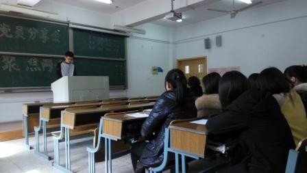 最后,郑晓坤老师对在场的所有党员提出了殷切的期望。郑老师说,这次党员分享会的目的不单单是要大家主动学习两会精神,更重要的是培养同学们关注民生、关爱生命的社会责任感,关注社会是为了更好的关注自我,通过加强政治理论学习提升大家的世界观和人生观,努力践行社会主义核心价值观,让党员做好自我,在平时的学习和生活中影响更多的同学,引导他们过上一种积极、健康、阳光、向上的生活。