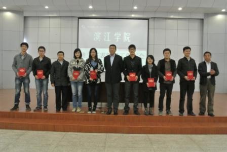 党委书记徐华首先宣布了《关于表彰南京信息工程大学滨江学院2012-2013学年优秀班主任的决定》,17名优秀班主任上台领奖并合影留恋。