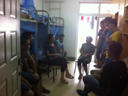 在宿舍,老师和党员们都行动起来,有的帮助他们打扫卫生,有的帮助他们整理床铺,有的帮助他们摆放新领到的书本。接着,组长与新生展开了亲切的交谈。学校几点上课、怎么样加入学生会及一个个生动的安全防范教育的案例等都是他们谈论的话题。通过交谈,有的同学发现互相之间是老乡,有的发现这个学长或学姐在报到时候迎接过自己。很快,大家就欢声笑语,打成一片。在今后一段时间的学习和生活中,高年级党员将在学习、生活等方便给新生提供指导和帮助,帮助他们尽快适应大学生活。