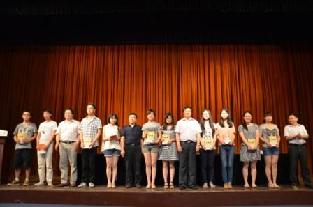 副院长杨丰政宣读《关于表彰2013年考研优秀学生考研工作先进集体及先进个人的决定》,大气与遥感系、电子工程系、会计系、学生工作办公室、考研工作办公室被评为2013年考研优秀学生考研工作先进集体,马超俊、张捷等17位老师被评为先进个人,何志伟、马振忠等360名同学被评为考研优秀学生,会上,院领导还对获得考研学生进行了授书。
