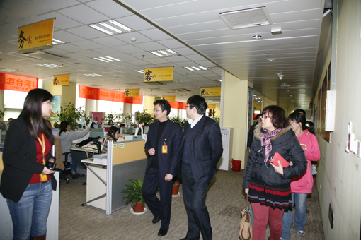 12月7日,耿焕同副院长带领教务办齐运锋主任、实践教学科李艳艳副科长、经贸系学办倪慧主任、外语系学办王娟主任、会计系学办郑晓坤主任等一行前往焦点科技参观考察并看望慰问了正在接受“飞鹰”训练的学生,向学生带去学院领导的关怀,并鼓励学生再接再厉,好好学习,让学生感受的学院的温暖。耿副院长一行还参观了公司的整体办公环境,并与焦点科技领导就校企合作事宜进行了现场的交流。
