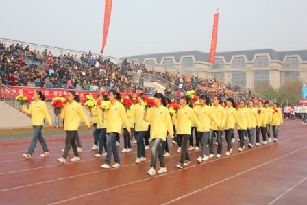 校长助理、滨江学院院长申双和致开幕辞。申院长说,运动会的举办对进一步促进学院教育教学工作、推动群众性体育的蓬勃开展、构建和谐校园具有积极意义。也是对我院加强群众性体育活动成效的一次大检阅,是对同学们体育水平、身体素质、精神风尚的一次大验收。申院长希望通过此次运动会增强全体学生的集体荣誉感,增强学院凝聚力、战斗力和向心力,希望通过运动会,进一步动员和号召更多的学生参加课外体育活动,形成人人参与、个个争先、生气勃勃的校园体育氛围,让“每天锻炼一小时,健康工作五十年,幸福生活一辈子”的理念深入到每一位师生员工心中,让广大学生学会健体,学会强身,真正成为不但学习好,更要身体棒,在德智体美劳方面实现全面发展的优秀人才。