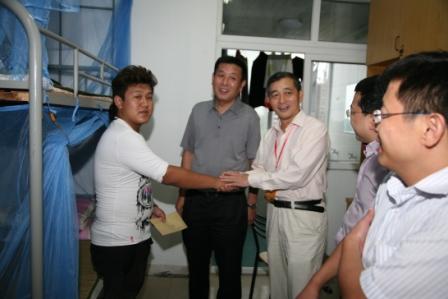 下午,校党委副书记、副校长李久生来到滨江学院学生宿舍,亲切看望2012级新生,并为部分特困生送上了慰问金。