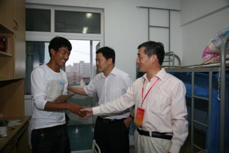 在学生公寓14栋526室,当了解到电子信息工程专业新生吾坚贡布来自西藏日喀则地区时,李久生副书记对其饮食、住宿等问题特别关注,“学校的饭菜还合胃口吗?”“适不适应南京的气候?”“学校是一个温暖的大家庭,如果有什么困难尽管提出来,学校会尽力帮助解决。”同时,他还嘱咐陪同的学院领导一定要根据少数民族地区的风俗与文化对少数民族学生在生活和学习上给予必要的关心和照顾。