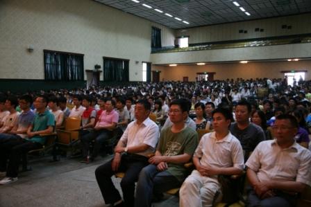 表彰大会在庄严的国歌声中拉开帷幕。2012届1037名同学报名参加全国硕士研究生统一入学考试,达线总人数为443人,达线率13.84%,截止到6月13日,总计录取315人,录取率达到9.84%,其中,考取985、211高校的学生为42人,考研达线率及录取率均创历史新高。