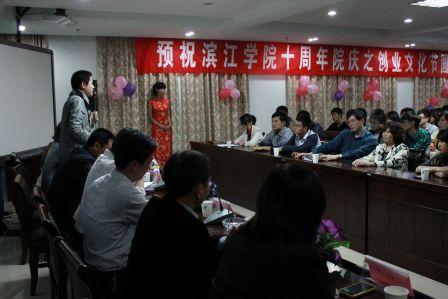 “梦想在心中点燃,创业在脚下实现”。4月26日18:30,由学院社团理事中心主办的“十年院庆之创业文化节”启动仪式在综合楼教室正式拉开帷幕。赛阔化学总经理江孝林,东亚银行副行长闫芳,悦海房产投资管理公司创始人李道宇,创业者联盟代表唐建等企业家以及院就业办主任陈建坤、院团委副书记邱章强、实践教学科副科长李艳艳,团委老师王达出席此次活动。此外以南京审计学院金审学院,南京工业大学浦江学院,南京大学金陵学院等兄弟院校出席了启动仪式。