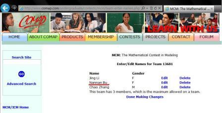参赛队由卜南南、李静和章超三名同学组成,在参加美国大学生数学建模竞赛前,他们总结了参加全国大赛的经验,进一步夯实基础知识,阅览大量优秀获奖论文和案例分析,锻炼和提高了英语水平,为提交最终的英文版论文做准备。虽然赛前做了很多准备,但是MCM对应用数学知识的灵活性、原创性和实用性等的要求比较高。比赛的四天当中团队内部也遇到了一些困难,团队成员对题目的看法和解题思路不断地冲突和变换,多次的思路中断和分歧使团队的压力越来越大,有些问题的解决甚至需要现学现用。虽然遇到各种各样的难题,但是都没有让大家却步,队员们互相鼓励、相互支持,圆满完成了比赛。这个经历不仅锻炼了他们的创新意识和思考问题的全面性与深度性,而且提高了他们团队合作和心理承受压力的能力,提升了团队成员的精神境界。