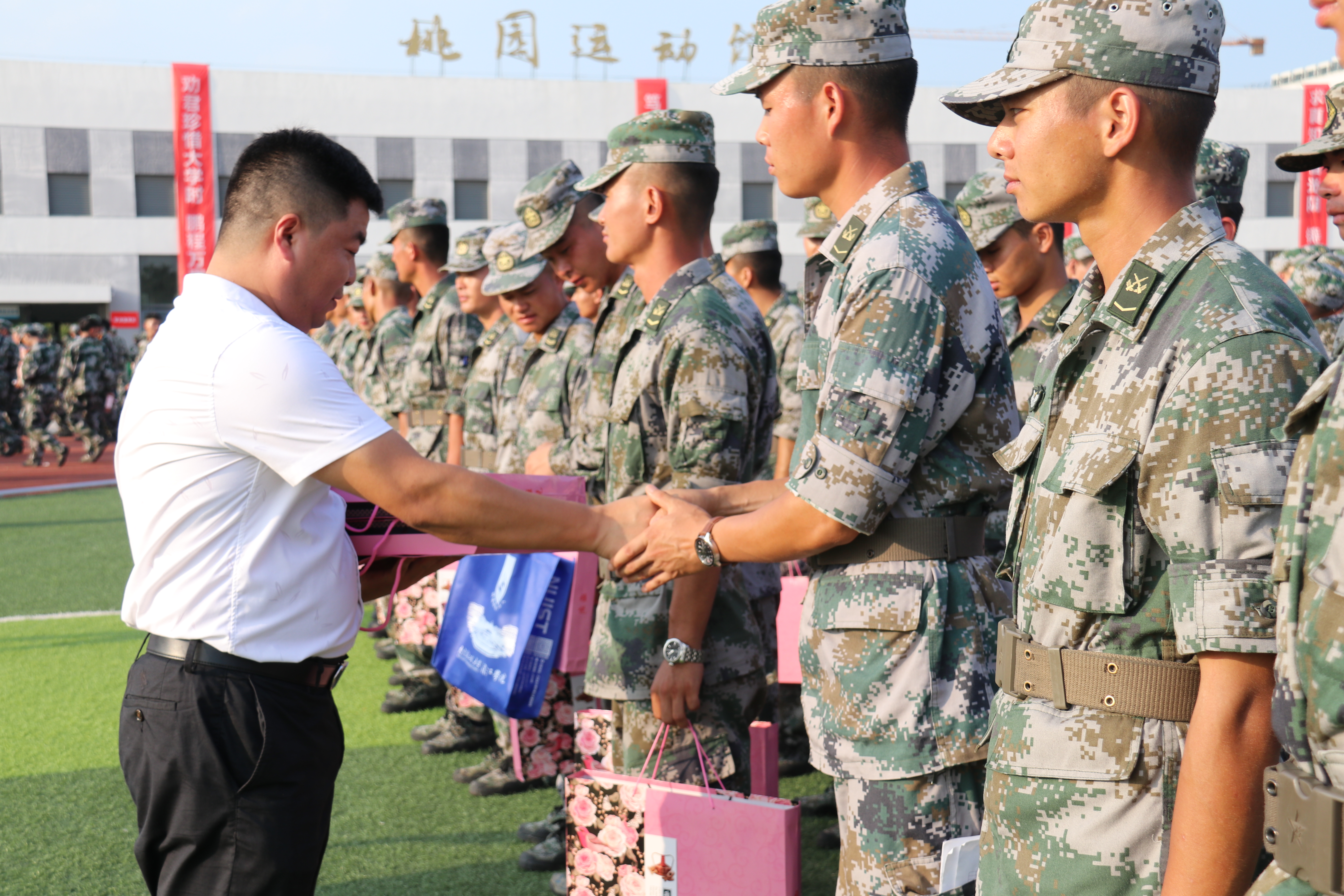 随后,张灿龙副书记一行为新生及教官发放了中秋慰问礼品。