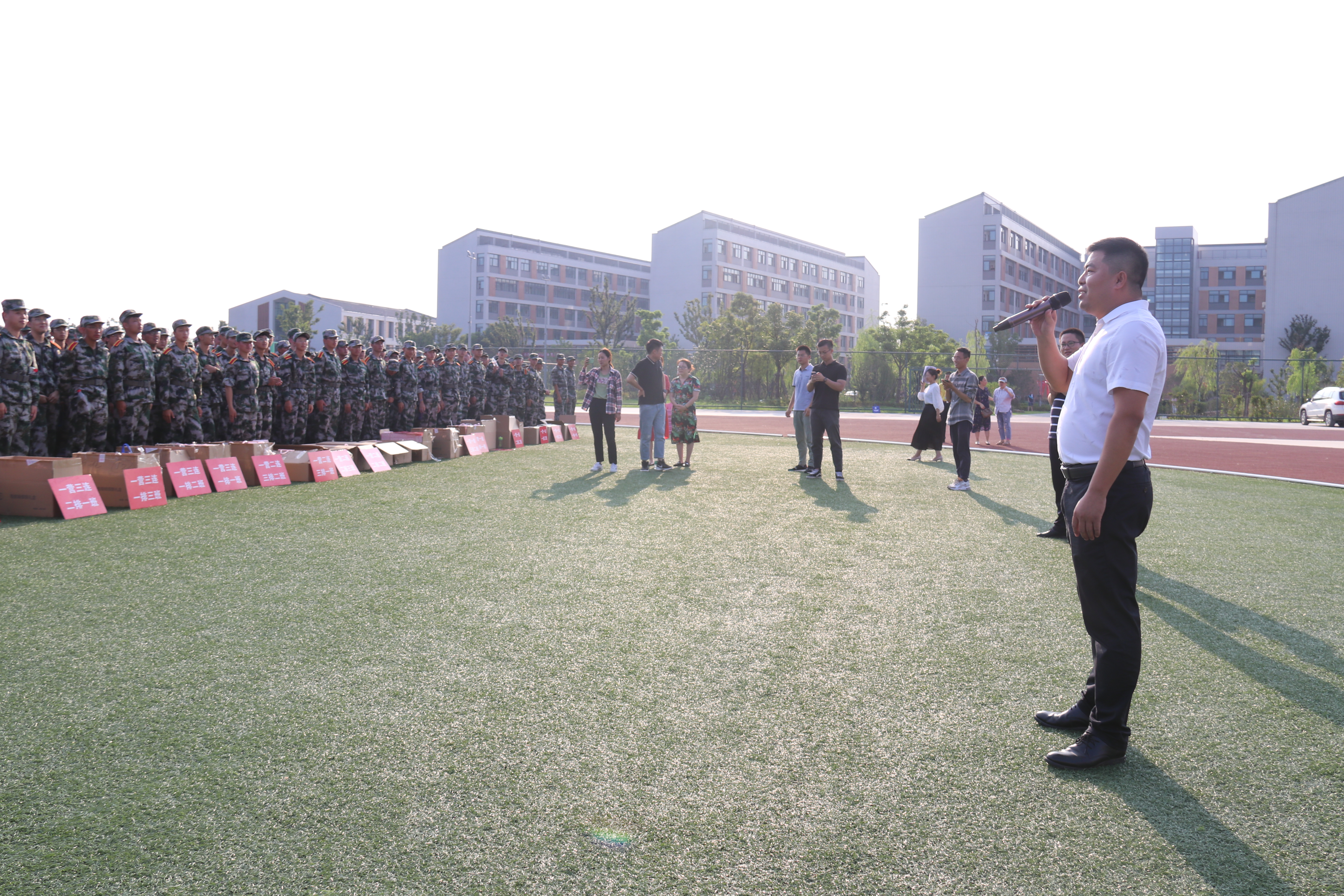 张灿龙副书记在军训方阵前发表讲话,对军训教官付出的努力表示衷心的感谢,对2019级新生加入滨江大家庭再次表示热烈的欢迎,对同学们几天以来的军训成果给予了肯定。他希望同学们珍惜机会,严以律己,磨炼意志,学习军人吃苦耐劳的精神,将军训中磨炼出的意志品质融入到今后的学习、生活中去,并祝同学们圆满完成本次军训任务,佳节快乐。