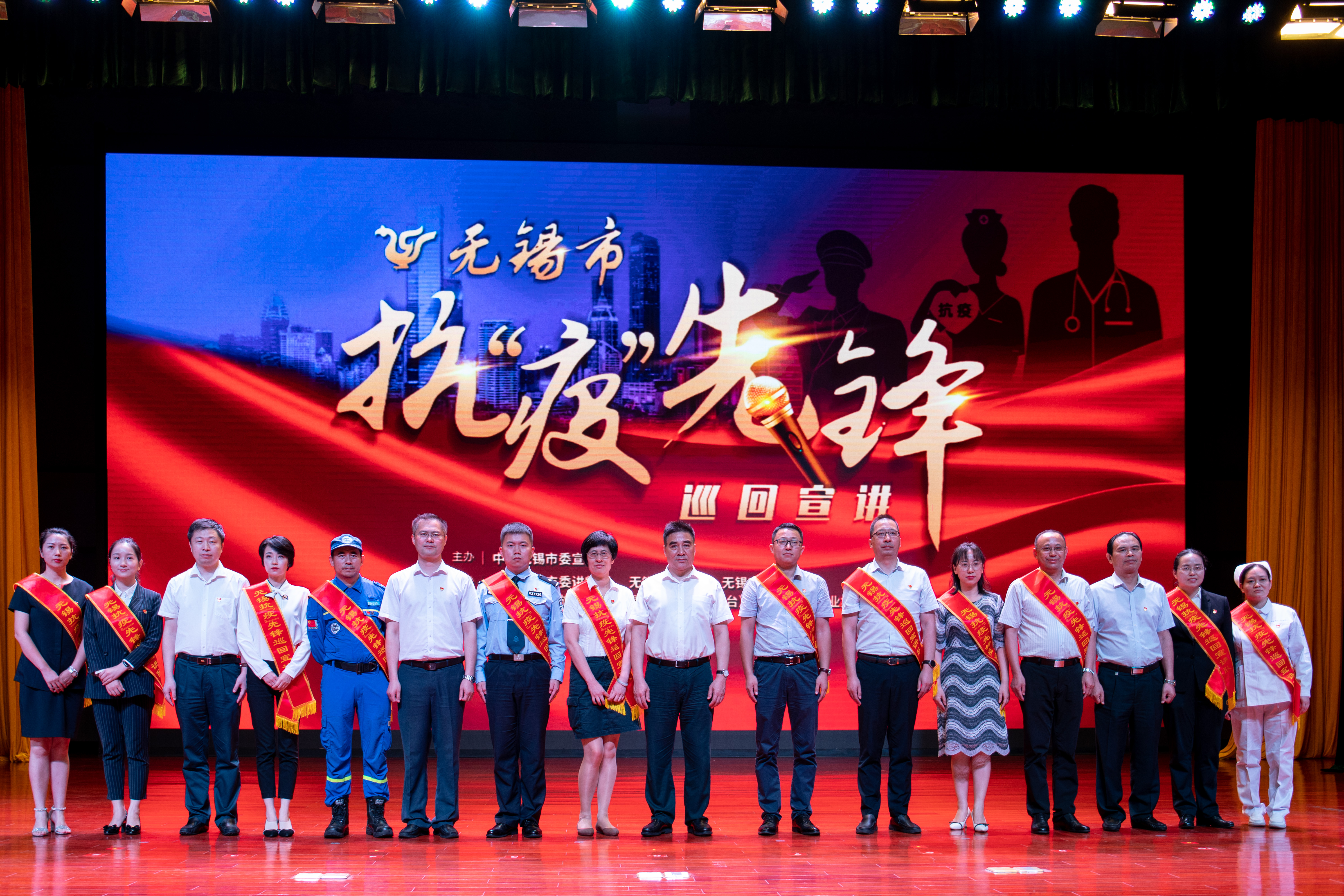 抗“疫”先锋代表许红阳和与会领导共同按下启动手印,开启了“无锡市抗‘疫’先锋巡回宣讲”的宣讲征程。