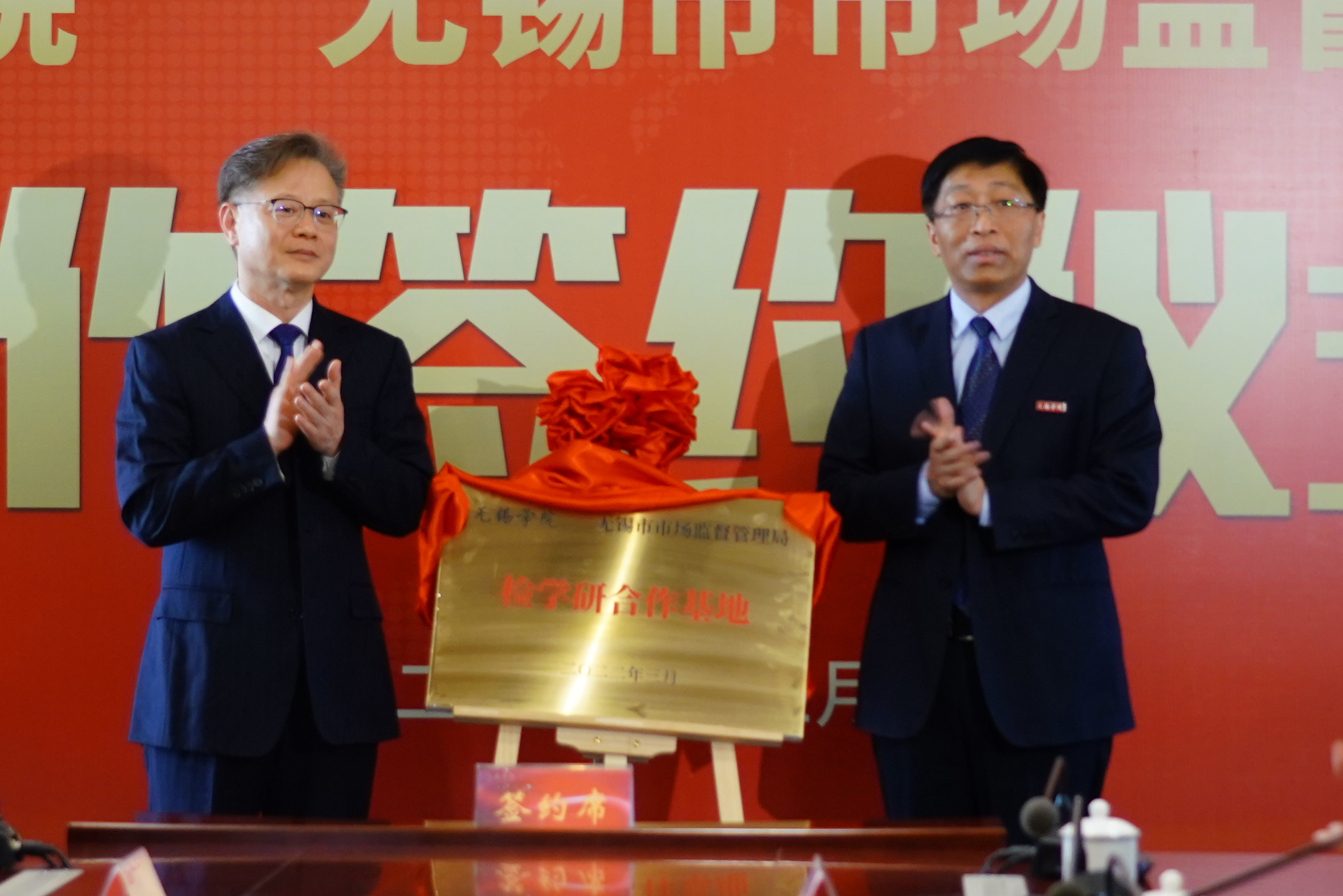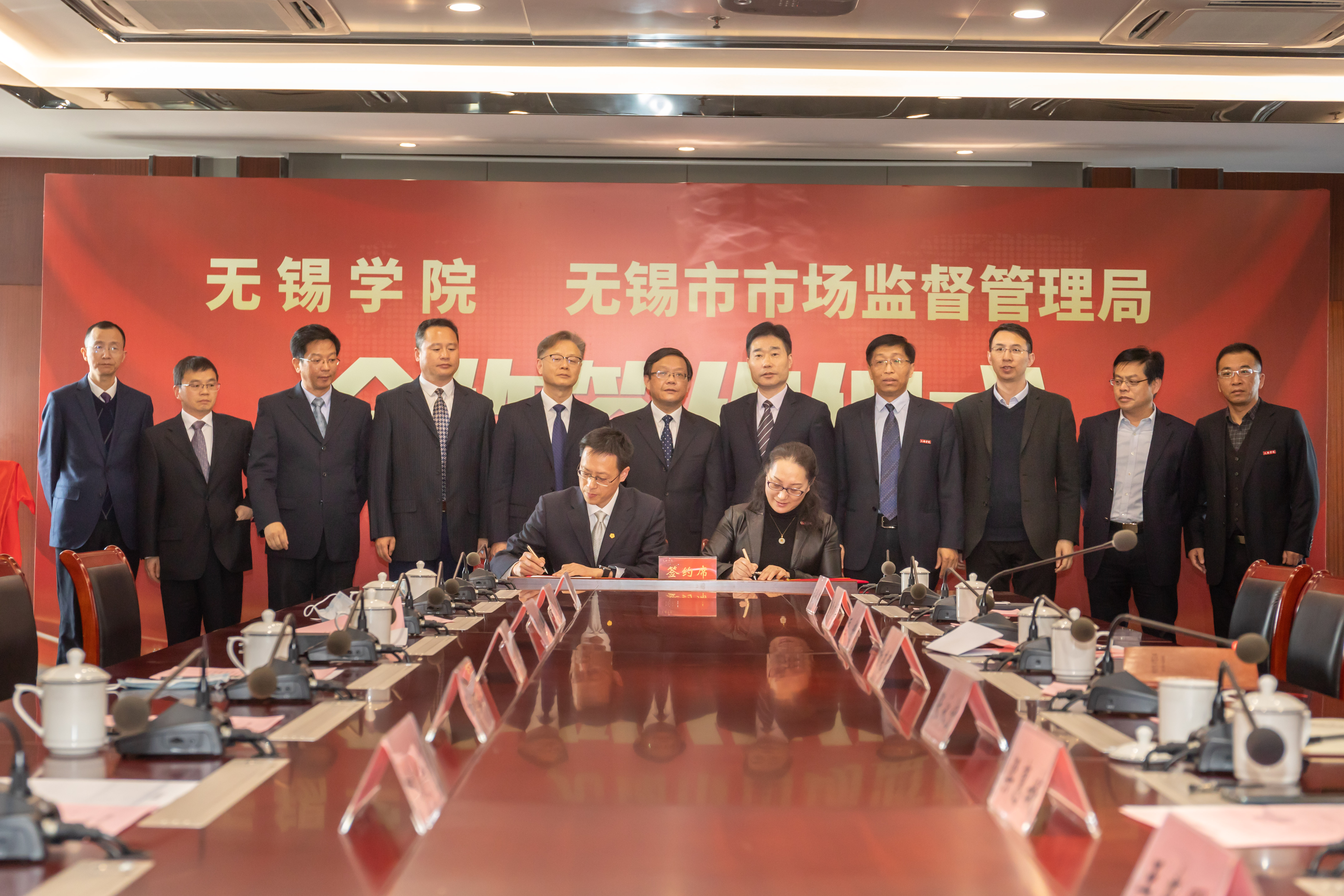 3月9日,我校与无锡市市场监督管理局举行战略合作签约仪式,并为双方共建的“低碳学院”和“检学研合作基地”揭牌。无锡市人民政府副秘书长周浩明,无锡市市场监督管理局党组书记、局长周建辉及领导班子成员,校党委书记杨建新、校长张永宏及校领导班子成员出席活动。