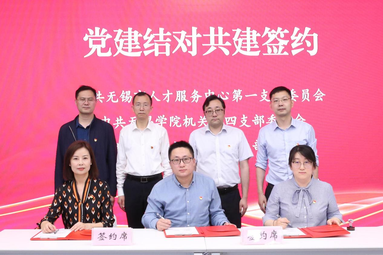 会上,中共无锡市人才服务中心第一支部委员会、中共无锡学院机关第四支部委员会和中共无锡市人才集团有限公司总支部委员会三方共同签署了党建共建结对协议。
