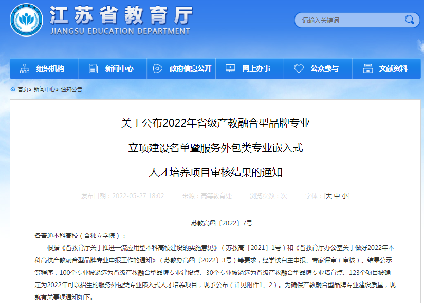 近日,江苏省教育厅正式公布了2022年省级产教融合型品牌专业评审结果,我校物联网工程、电子科学与技术、自动化3个申报专业全部入选建设点,入选数量位居江苏省本科高校第六,同类高校第一。