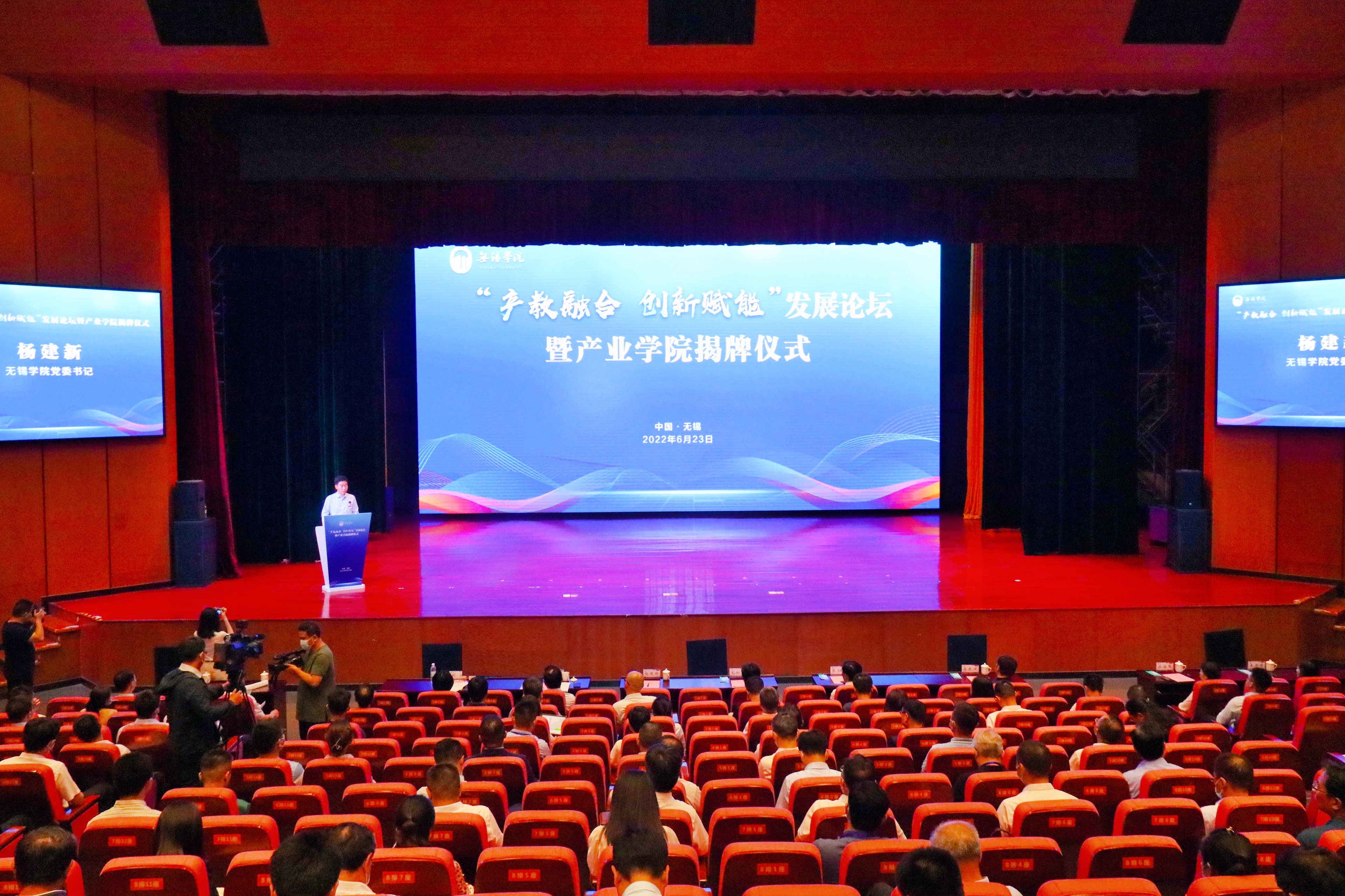 3位院士领衔助力,30余家头部企业齐聚一堂,6所产业学院密集落地,首批产业教授集中亮相,1家国家大学科技园顺利“落户”……6月23日,我校召开“产教融合创新赋能”发展论坛,无锡市政协副主席毛加弘、无锡学院党委书记杨建新、校长张永宏和全体校领导、无锡市教育局副局长惠恭健、科技局副局长刘红、锡山区副区长保海燕、新吴区副区长王丹丹出席论坛。来自多家龙头企业的100余名行业代表和师生代表齐聚一堂,共同探讨校企合作和协同育人新路径,开启产教融合新征程。
