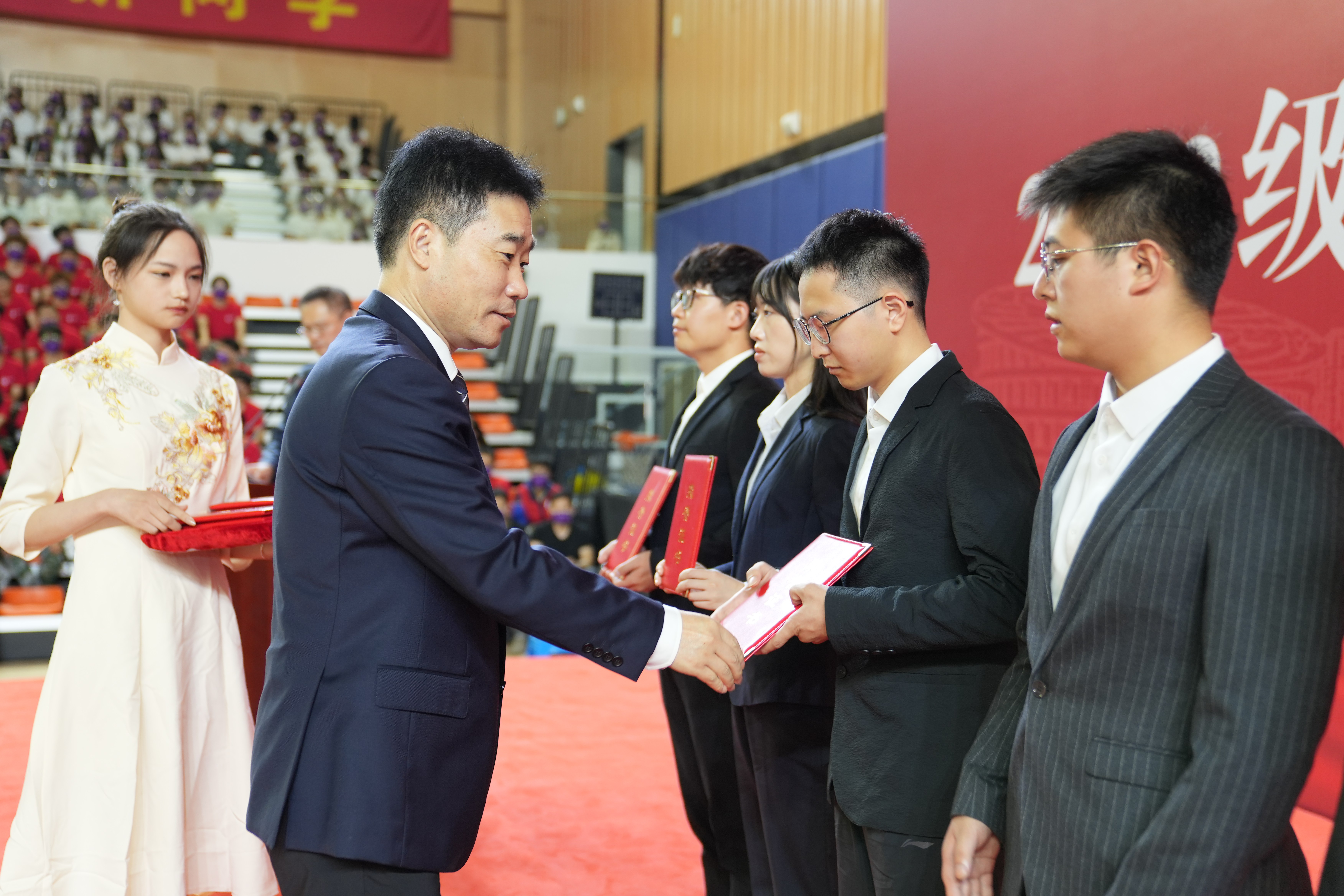 杨建新为学生代表颁奖