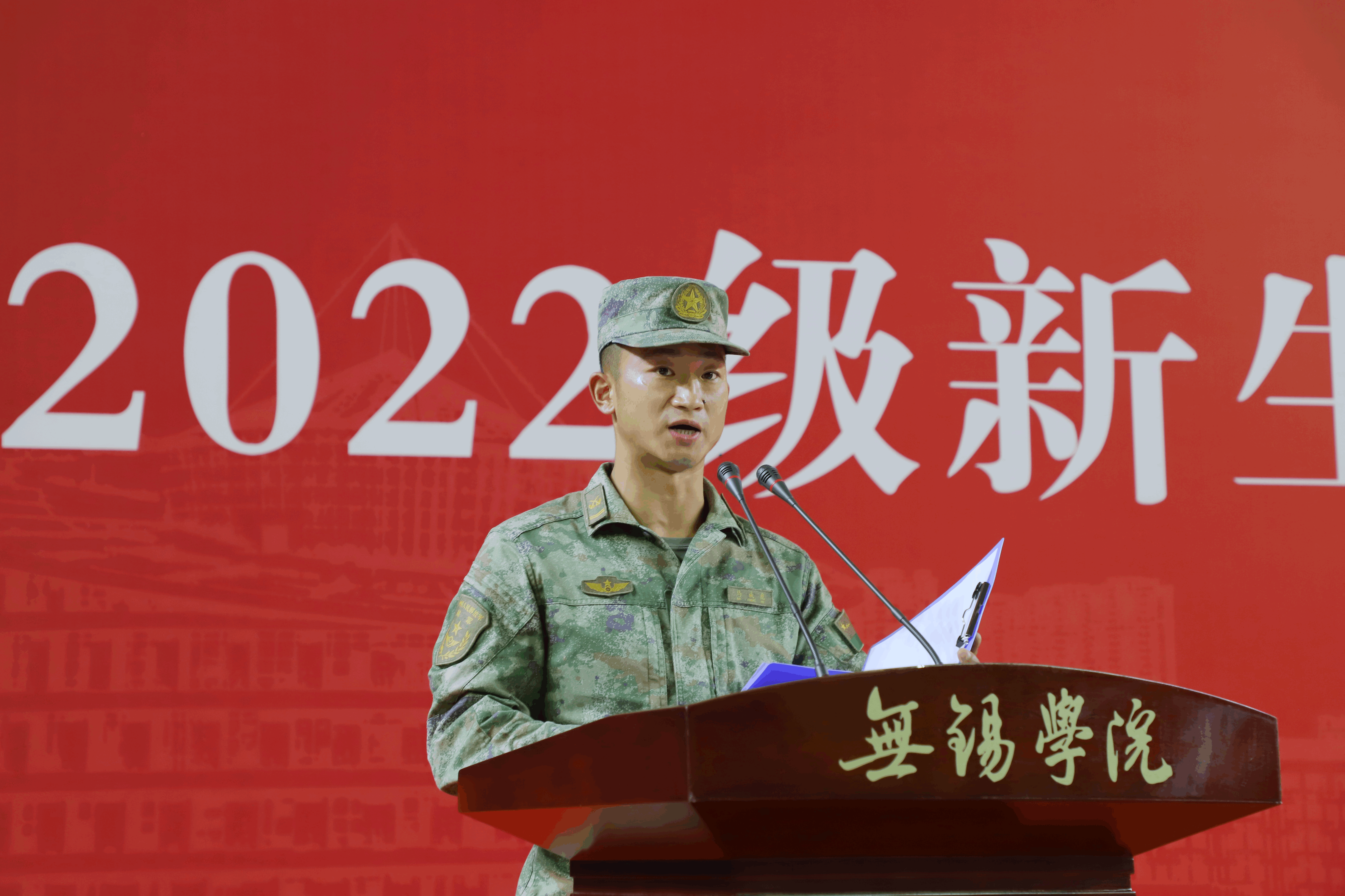 随后,校长张永宏为2022级新生军训团授旗,承训教官代表马成虎教官、参训新生代表方一凡先后发言,副校长左同宇介绍军训工作。