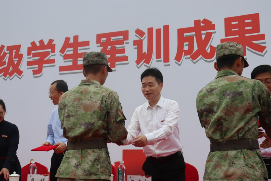随后,曹广喜副校长宣读《关于表彰2021级学生军训优秀教官和优秀学员的决定》,表彰了黄玉帅等42名“优秀教官”和王玉妮等248名“优秀学员”。主席台就座的领导和嘉宾为优秀教官代表、优秀学员代表颁奖。
