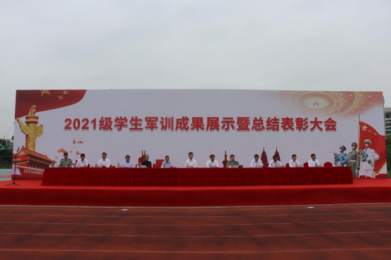 浩然书生气,沙场秋点兵。9月30日上午,2021级学生军训成果展示暨总结表彰大会在我校桃园运动场举行。中国人民解放军73676部队参谋朱孟豪,锡山区人武部政委吴玮,校领导杨建新、张永宏、匡辉、梁惠娥、曹广喜、王友明、胡剑凌、左同宇、徐军海及学校党委院长办公室、人武部、学工部(处)等相关部门负责人出席大会。大会由副校长左同宇主持。