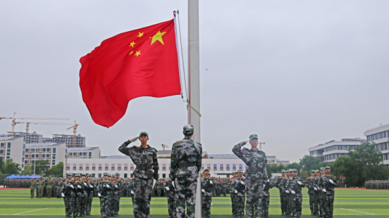 伴随着欢送曲《我爱我的祖国》,为期两周的2021级学生军训划上了圆满的句号。(人民武装部/文:王平平,图:窦新航;审核:朱广革)