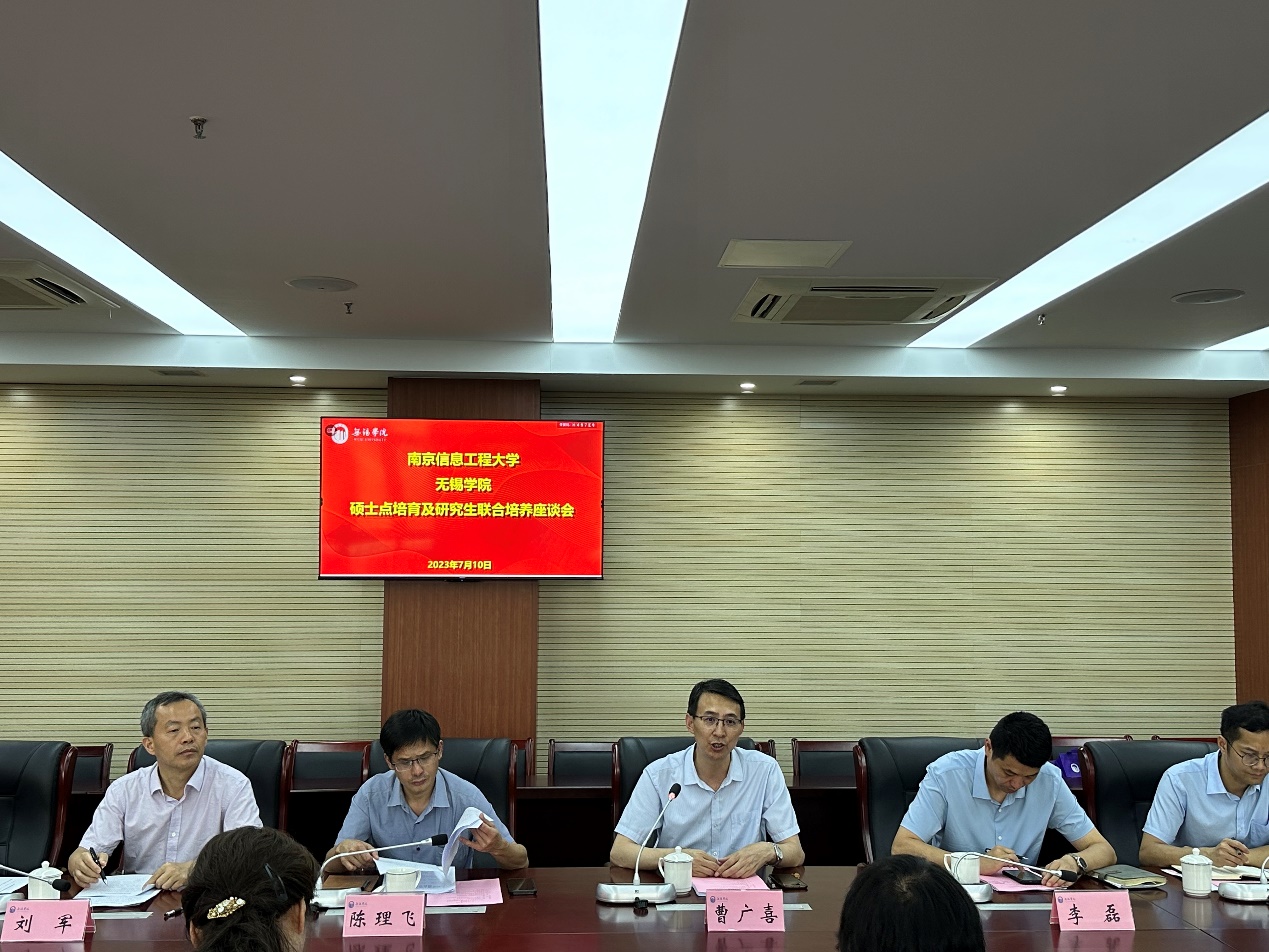 7月10日下午,南京信息工程大学党委常委、副校长朱大梅,研究生工作部部长袁敏,研究生院院长、学科建设处处长陆振宇等一行5人赴我校参加硕士点培育及研究生联合培养座谈会。副校长曹广喜,党委校长办公室主任李磊,学科建设与研究生管理处处长陈理飞及相关学院负责人和导师代表出席本次座谈会。会议由陈理飞主持。