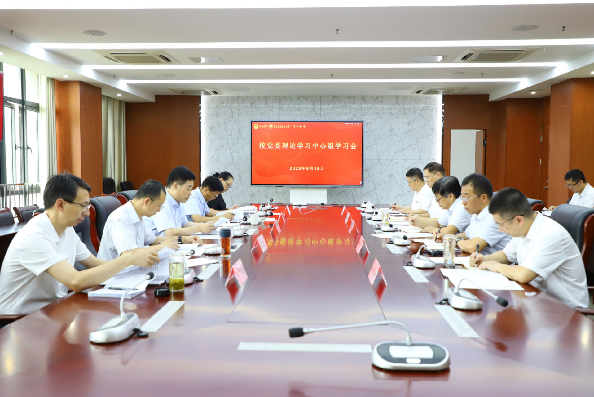 根据中央、省委关于在学习贯彻习近平新时代中国特色社会主义思想主题教育中开好专题民主生活会的部署要求,8月19日上午,我校党委理论学习中心组举行专题民主生活会会前集体学习,全体校党委领导班子成员参加会议,校党委书记杨建新主持会议并讲话。