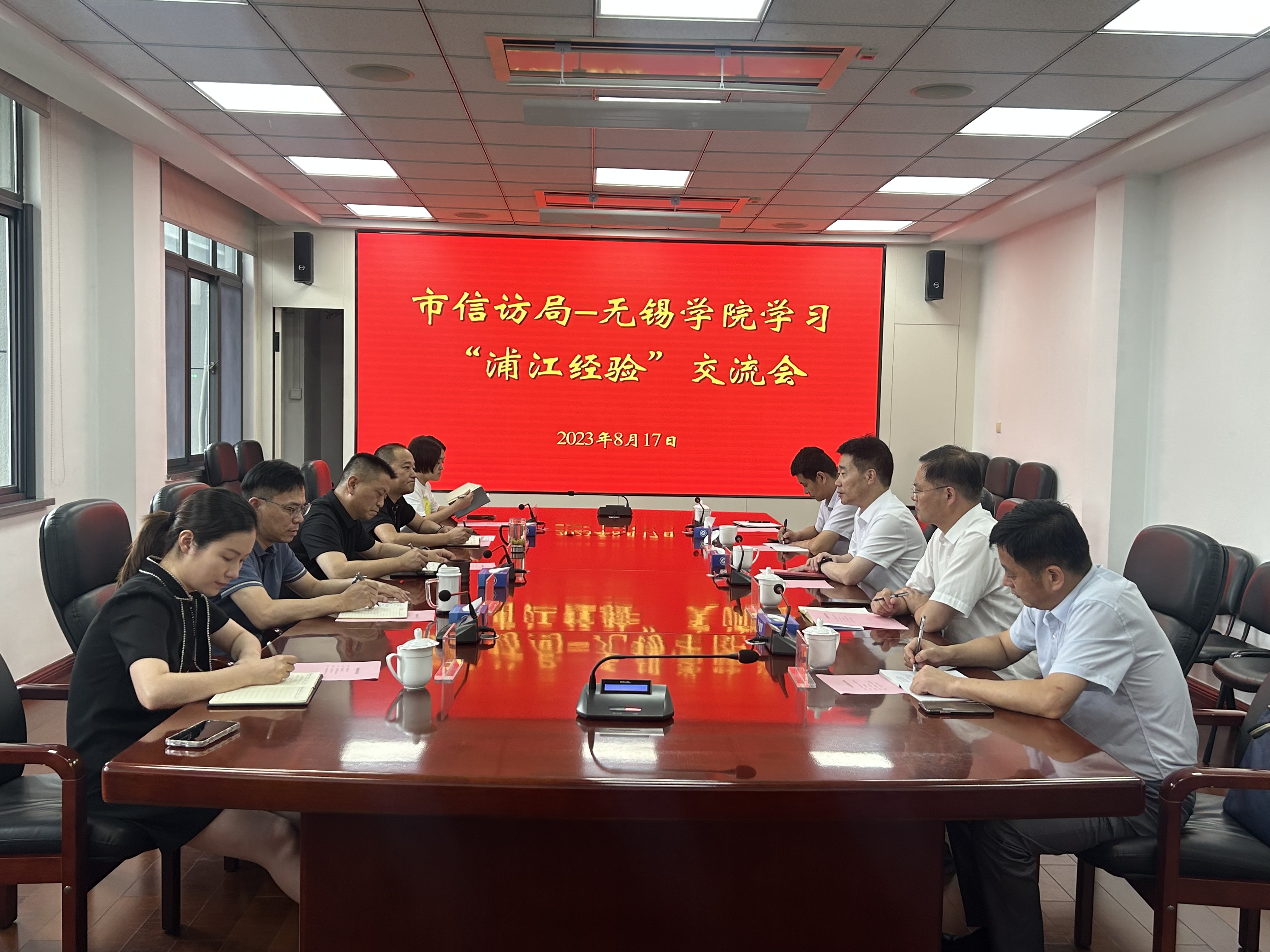 为深入学习“浦江经验”,8月17日下午,校党委书记杨建新,党委常委、副校长左同宇带领相关职能部门赴无锡市信访局交流座谈,无锡市政府副秘书长、市信访局局长张晓波,市信访局副局长夏志伟、张健峰等出席交流座谈会。