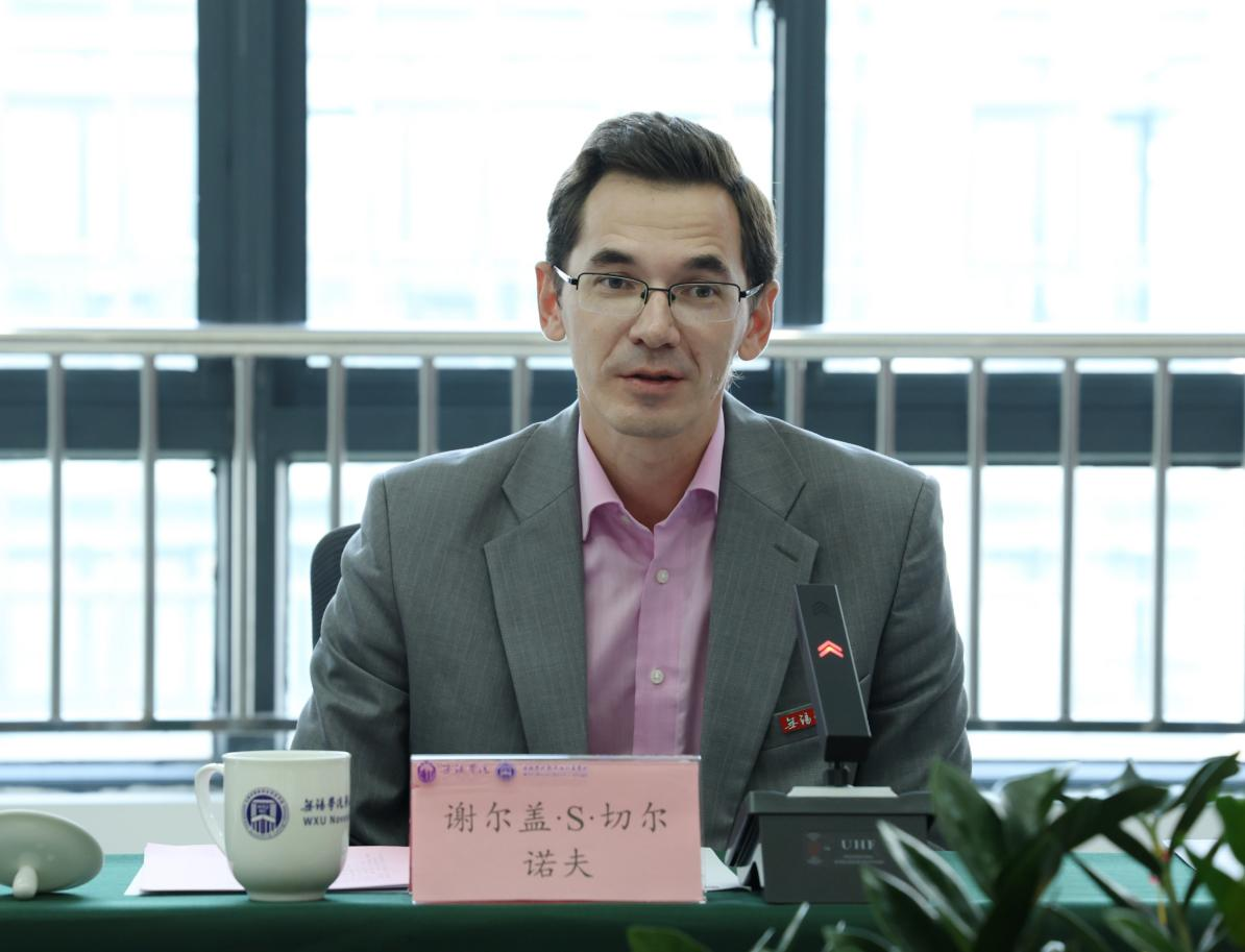 谢尔盖·谢尔盖耶维奇·切尔诺夫对我校的热情接待表示感谢,并对新西伯利亚学院的建设进展予以高度评价。他指出,新西伯利亚国立技术大学高度重视与无锡学院的合作,专门成立“CMITS”中心,全面负责新西伯利亚学院的教学运行与资源保障。他表示,俄方愿进一步深化两校在人才培养、科学研究等领域的务实合作,推动共建机构高质量发展。