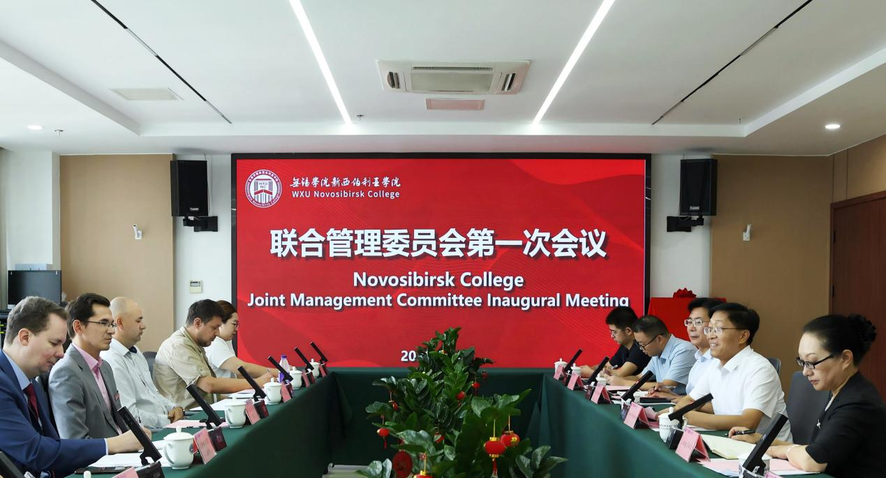9月11日上午,无锡学院新西伯利亚学院揭牌仪式暨2025年度联合管理委员会第一次会议在科创楼501会议室隆重举行。无锡学院党委书记、联合管理委员会主任张永宏,副校长、联合管理委员会委员梁惠娥,新西伯利亚国立技术大学副校长、联合管理委员会副主任谢尔盖·谢尔盖耶维奇·切尔诺夫,自动化与计算机工程学院院长、联合管理委员会委员伊万·列昂尼多维奇·雷瓦出席会议。教务处处长钱承山,国际合作与交流处处长王勇,新西伯利亚学院副院长李富,新西伯利亚国立技术大学国际事务部主任瓦季姆·弗拉基米罗维奇·涅克拉索夫,教务处负责人马克西姆·亚历山德罗维奇·巴卡耶夫等共同出席会议。会议由副校长梁惠娥主持。